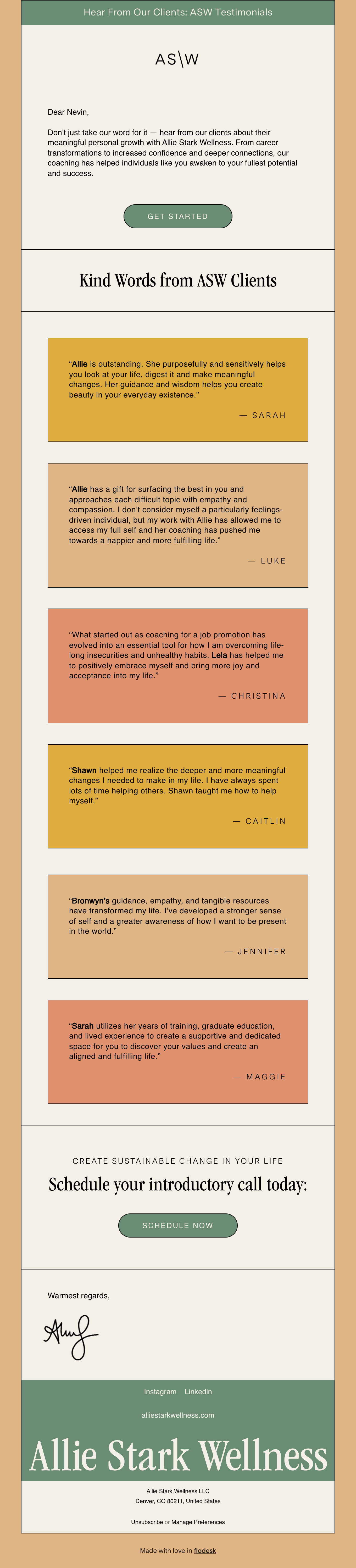 Browse Allie Stark Wellness's complete welcome email sequence — every email, subject line, timing, and design deconstructed. See exactly how their 6-email flow converts new subscribers.