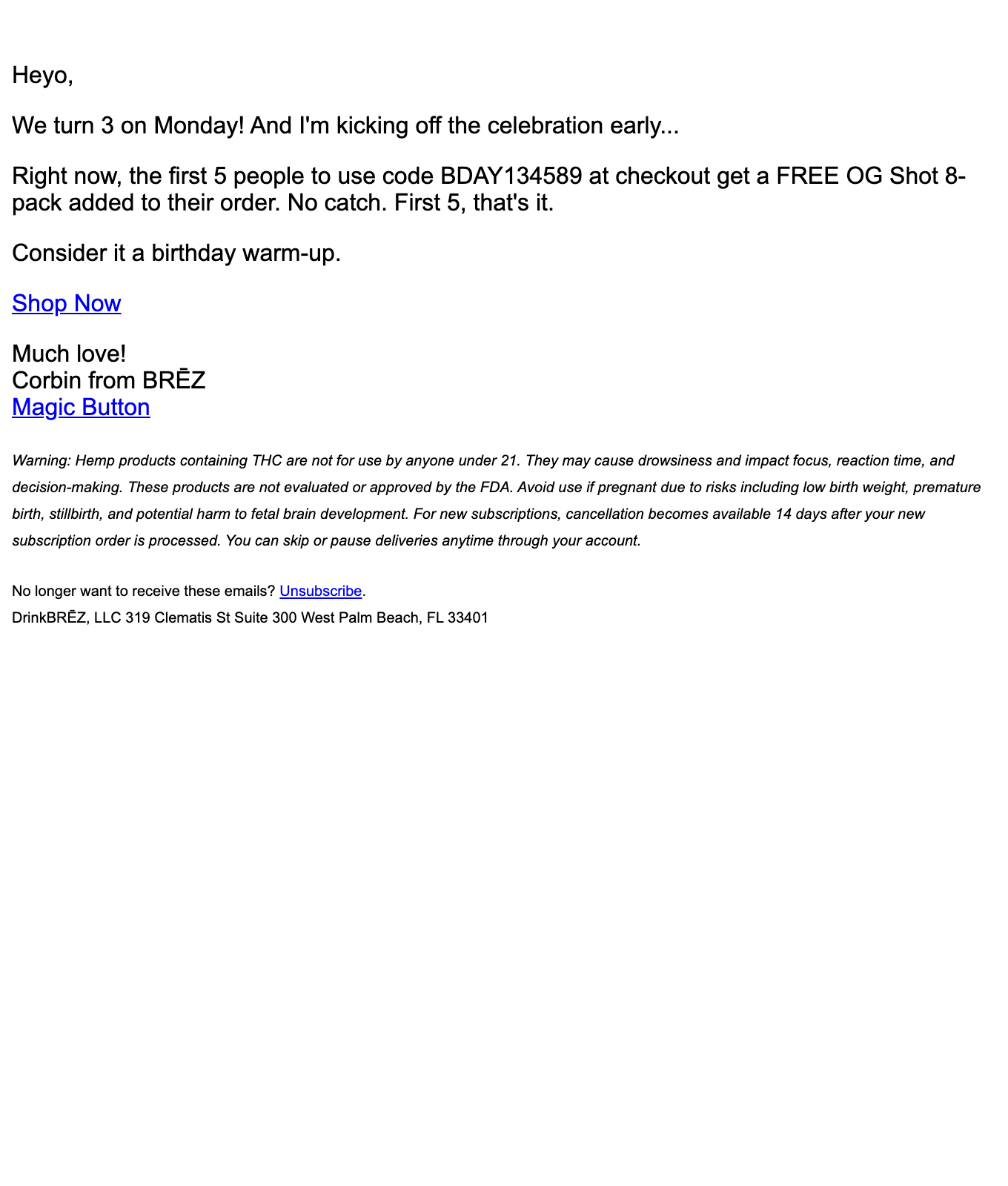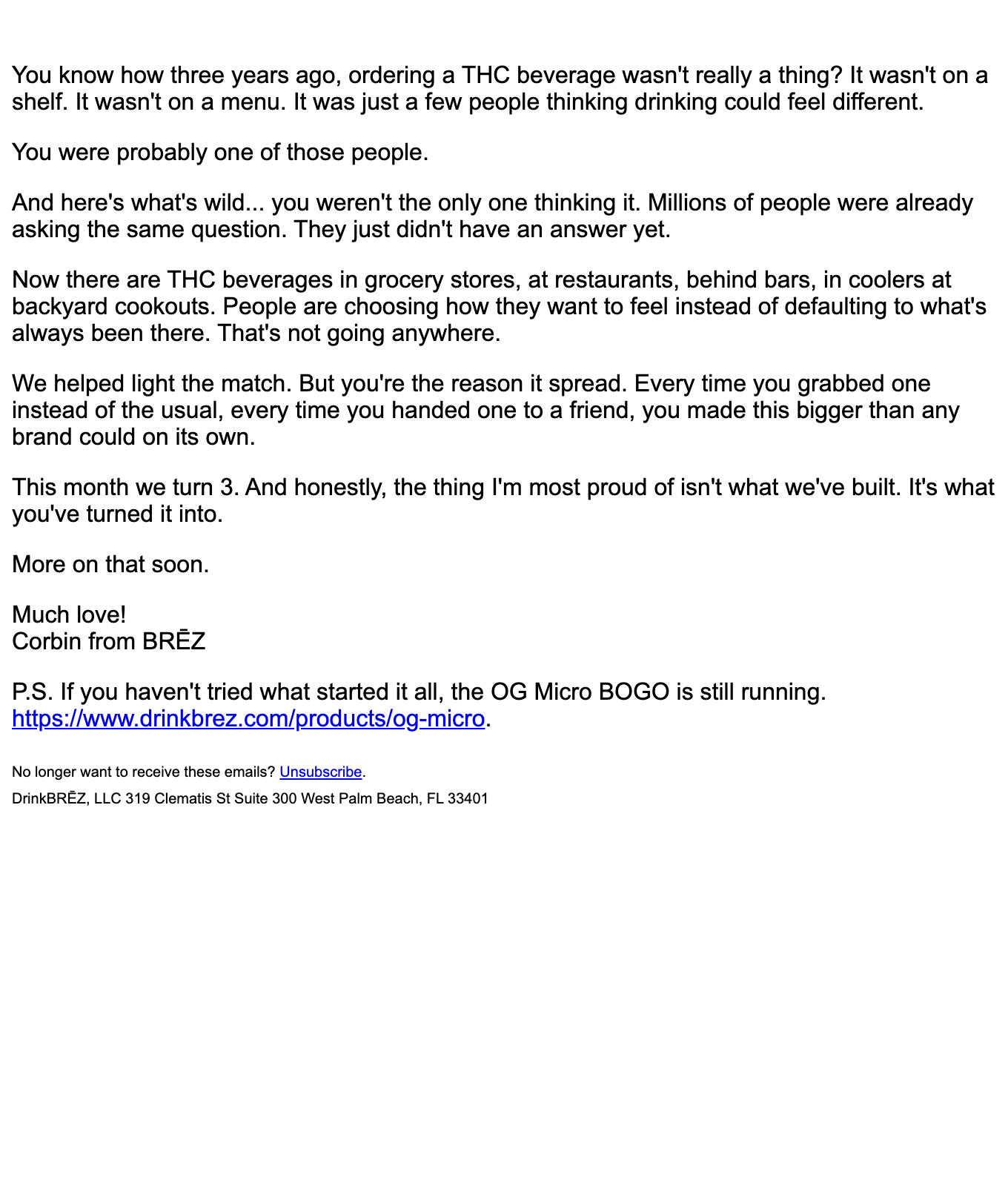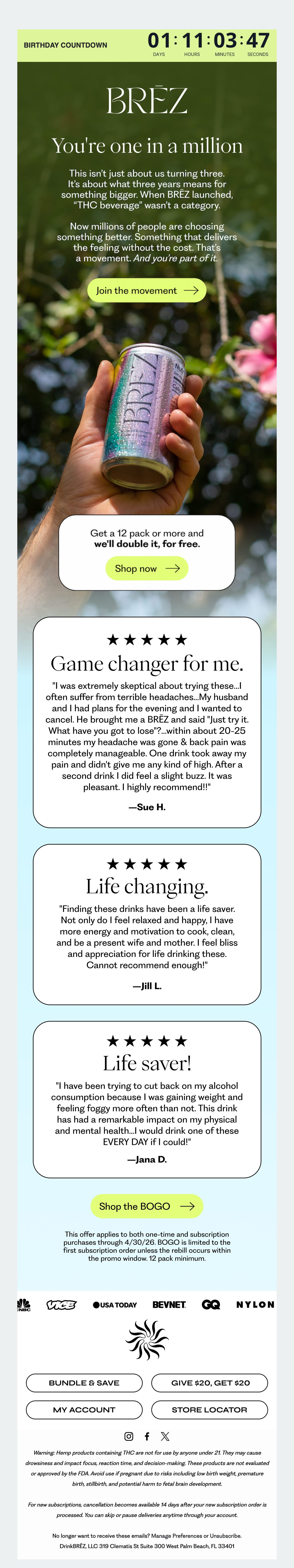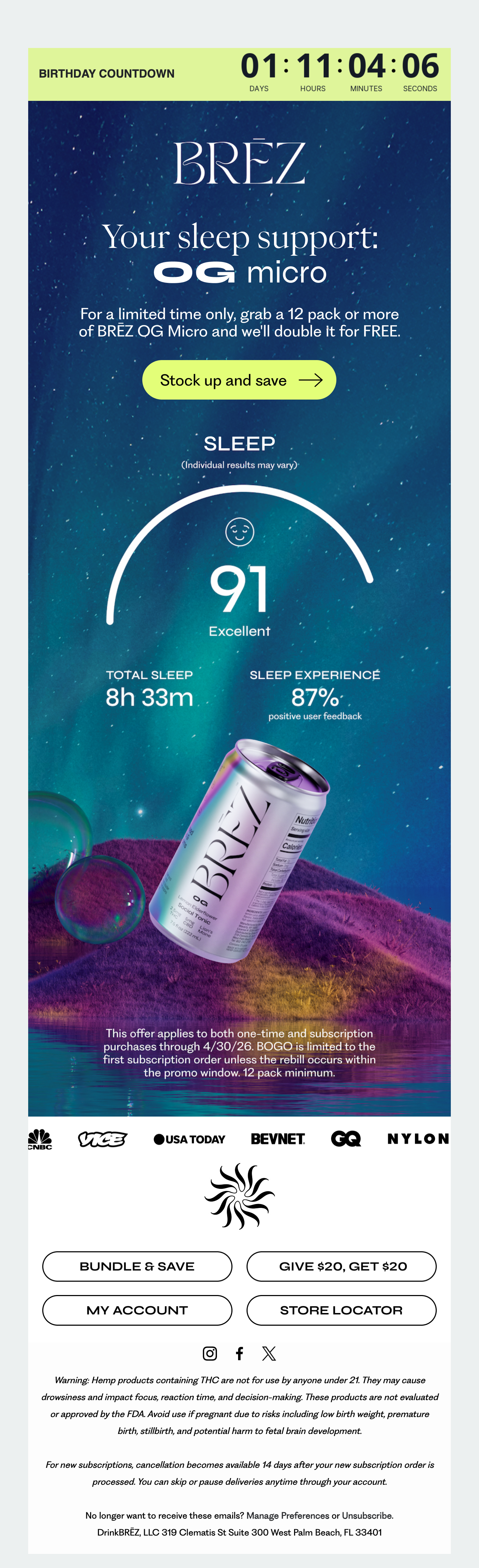 Browse BRĒZ's complete welcome email sequence — every email, subject line, timing, and design deconstructed. See exactly how their 32-email flow converts new subscribers.
