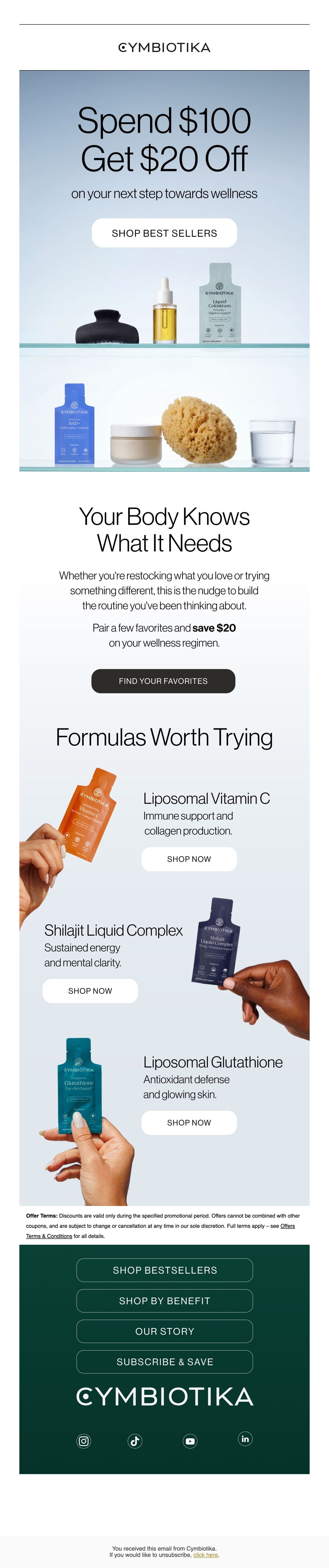 Browse Cymbiotika's complete welcome email sequence — every email, subject line, timing, and design deconstructed. See exactly how their 22-email flow converts new subscribers.