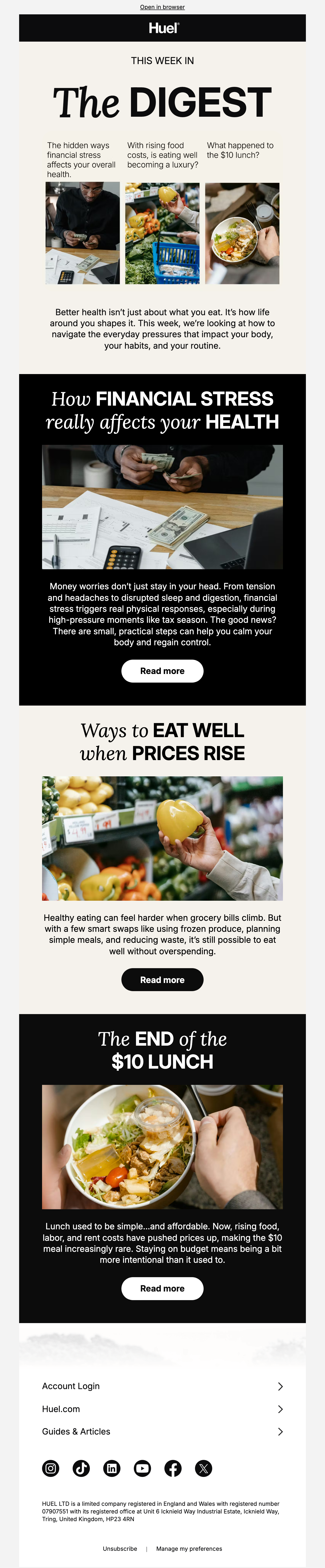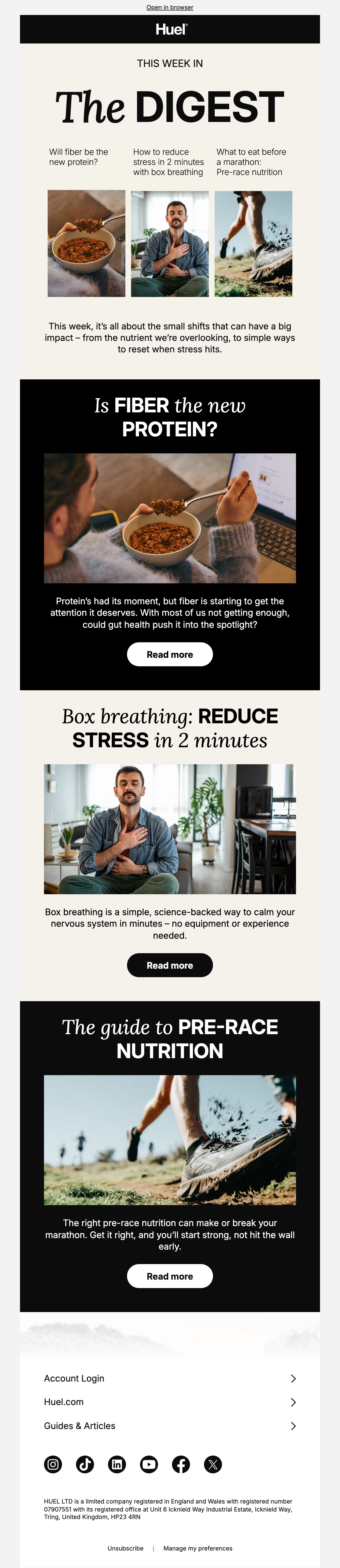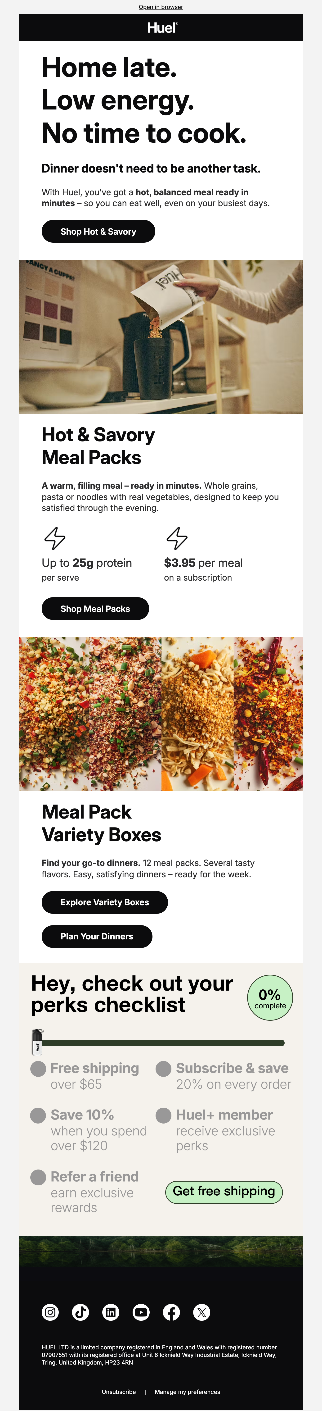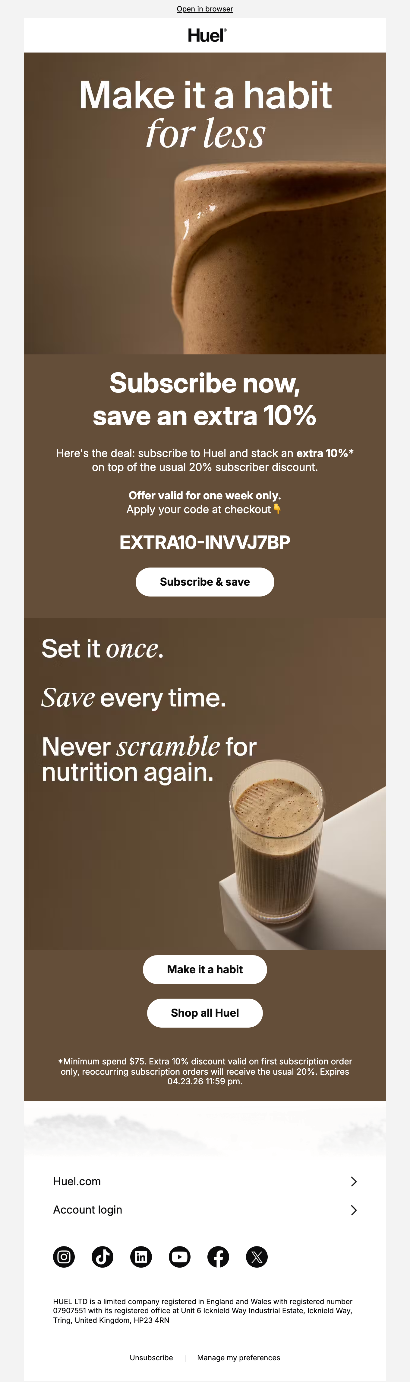 Browse Huel's complete welcome email sequence — every email, subject line, timing, and design deconstructed. See exactly how their 16-email flow converts new subscribers.
