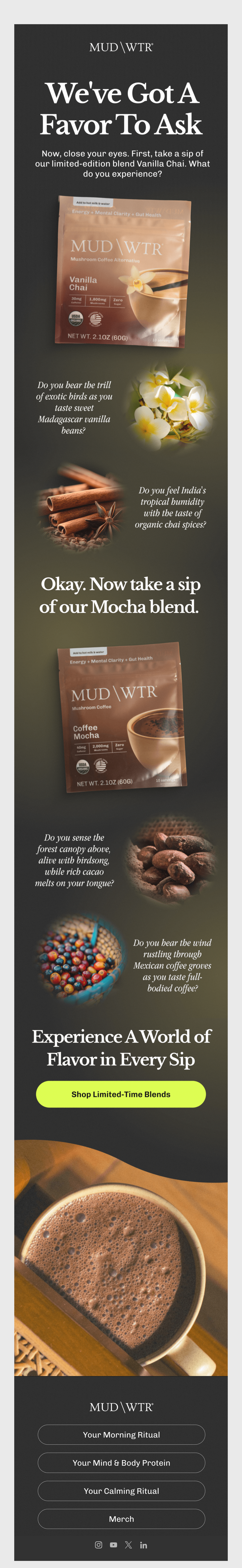 Browse MUD\WTR's complete welcome email sequence — every email, subject line, timing, and design deconstructed. See exactly how their 20-email flow converts new subscribers.