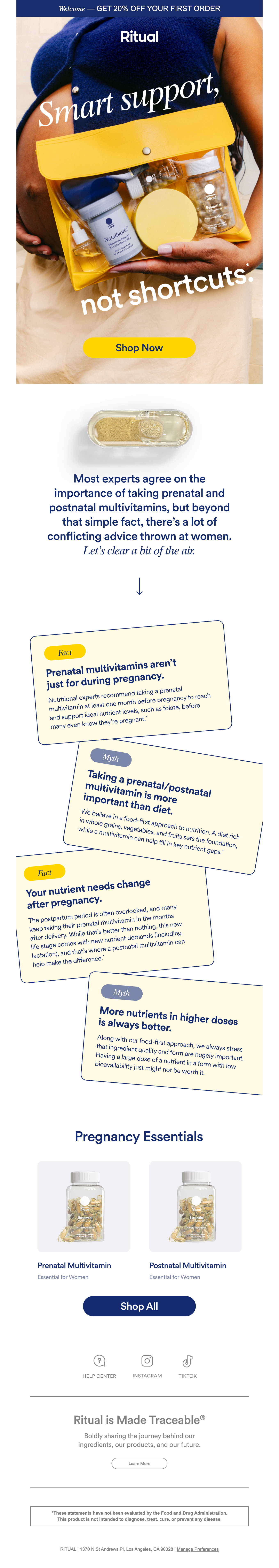 Browse Ritual's complete welcome email sequence — every email, subject line, timing, and design deconstructed. See exactly how their 5-email flow converts new subscribers.